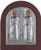 Εικόνα Ασημένια 200x250 Κων/νος & Ελένη Ξύλινη Βάση Μεταξοτυπία Χρυσό Πολλές Πέτρες