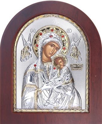 Εικόνα Ασημένια 260x310 Αμόλυντος Ξύλινη Βάση Μεταξοτυπία Χρυσό Πέτρες
