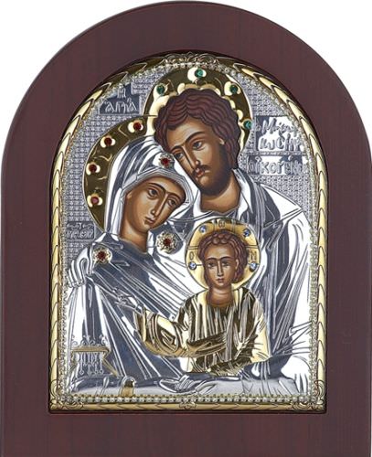 Εικόνα Ασημένια 200x250 Αγ. Οικογένεια Ξύλινη Βάση Μεταξοτυπία Χρυσό Πολλές Πέτρες