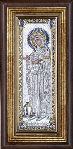 Εικόνα Ασημένια 100x220 Γερόντισσα Ξύλινη Βάση Μεταξοτυπία Χρυσό Έφεσσος