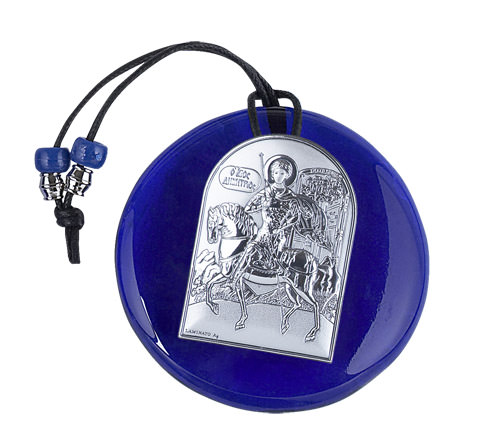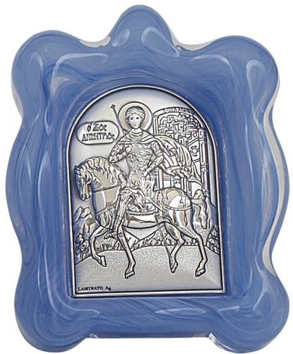 Εικόνα Ασημένια 85x110 Αγ. Δημήτριος Μουράνο Μπλε Μεταξοτυπία